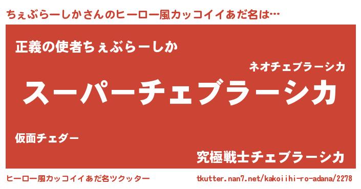 | 男性向けラノベタイトル風あだ名 | 『ちぇぶらーしかの憂鬱』 |