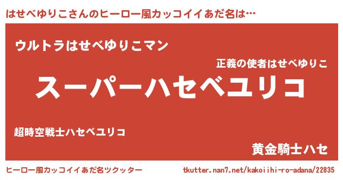 | 男性向けラノベタイトル風あだ名 | 『ハセベユリコアートオンライン』 |