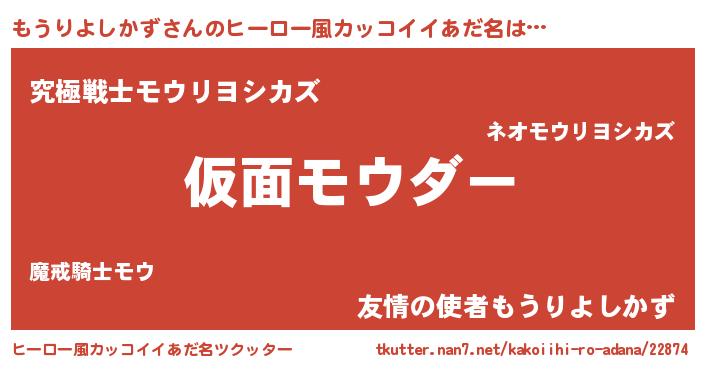 | 男性向けラノベタイトル風あだ名 | 『魔弾の王ともうりよしかず』 |
