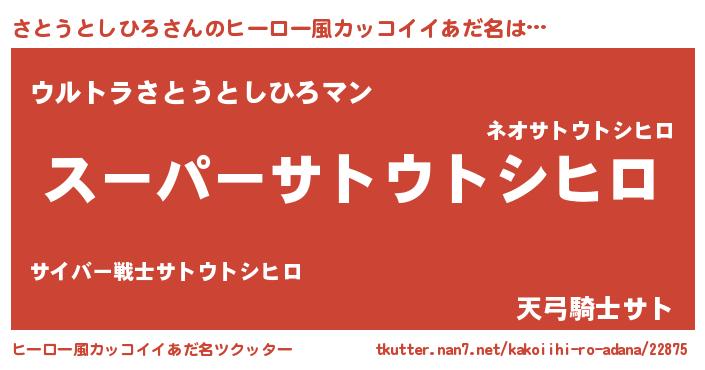 | 男性向けラノベタイトル風あだ名 | 『サトウトシヒロアートオンライン』 |