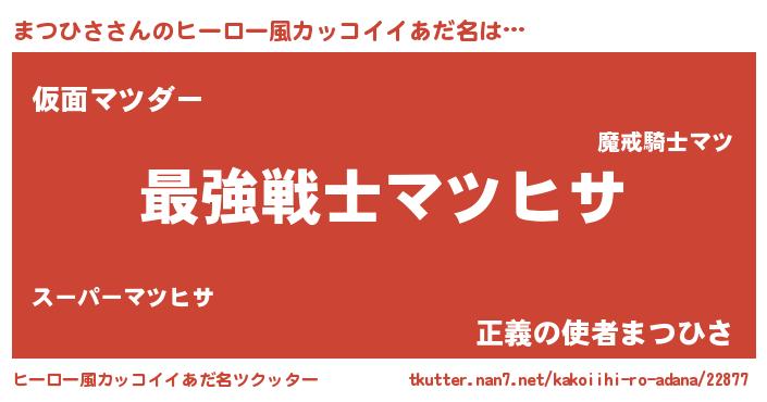 | 男性向けラノベタイトル風あだ名 | 『Re:まつひさから始める異世界生活』 |