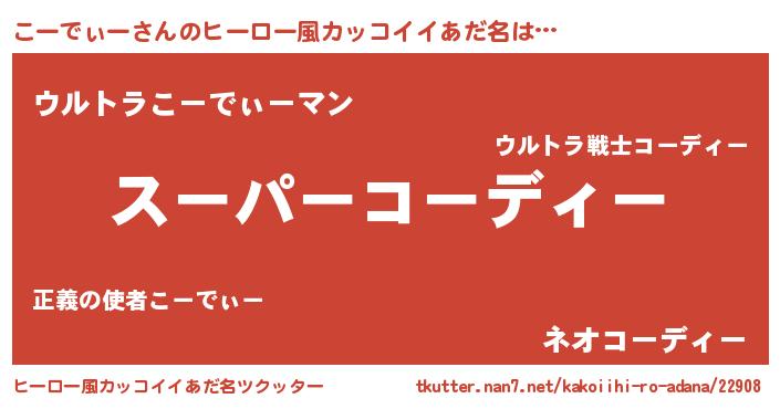 | 男性向けラノベタイトル風あだ名 | 『こーでぃーに滅ぼされるだけの簡単なお仕事です』 |