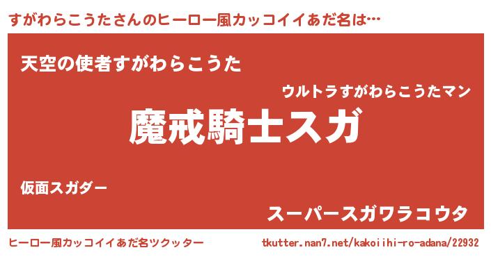| 胡散臭い通販商品みたいなあだ名 | 『伝統あるサプリメント…その名も「すがわらこうた」』 |