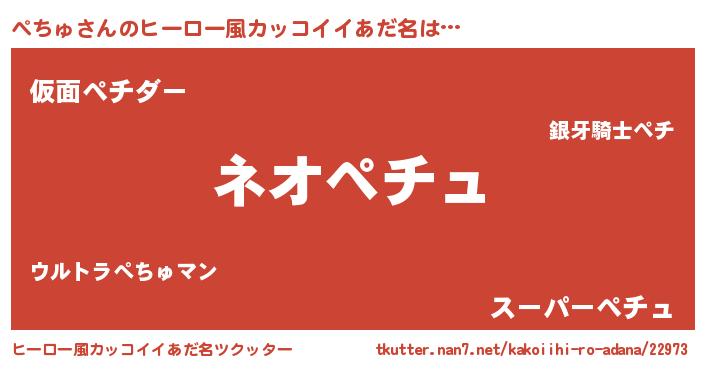 | 胡散臭い通販商品みたいなあだ名 | 『絶対に幸福をもたらす健康食品…その名も「ぺちゅ」』 |