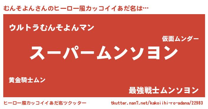 | 男性向けラノベタイトル風あだ名 | 『むんそよんの憂鬱』 |