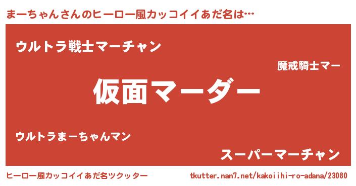 | 男性向けラノベタイトル風あだ名 | 『この素晴らしい世界にまーちゃんを!』 |
