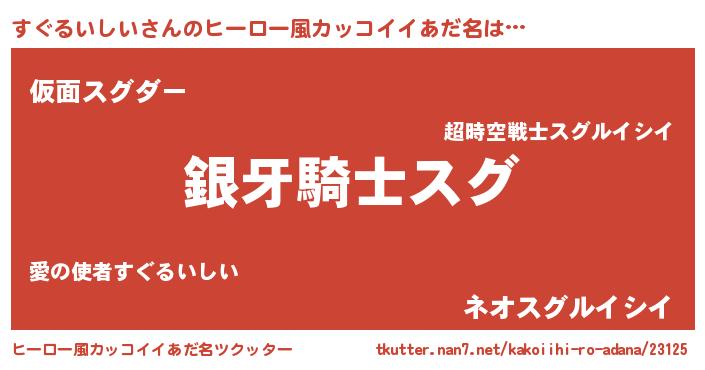 | 男性向けラノベタイトル風あだ名 | 『すぐるいしいの嫁は女の子じゃないと思った?』 |