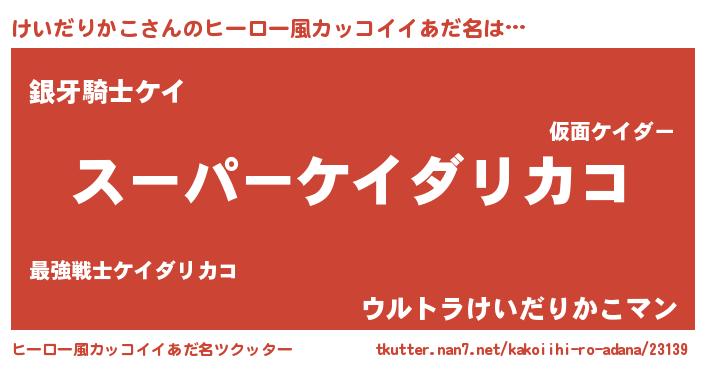 | 女子向けラノベタイトル風あだ名 | 『けいだりかこ姫と円卓の騎士』 |