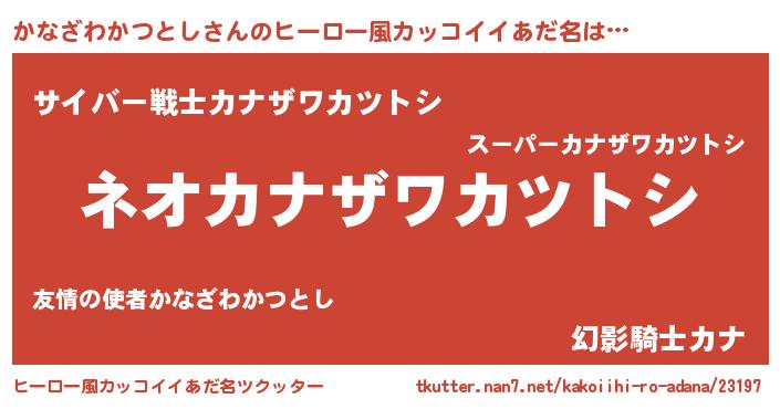 | 男性向けラノベタイトル風あだ名 | 『かなざわかつとしに滅ぼされるだけの簡単なお仕事です』 |