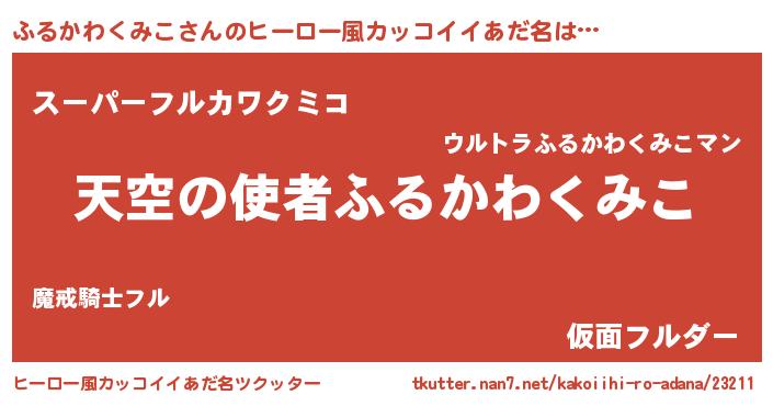 | 男性向けラノベタイトル風あだ名 | 『ノーゲーム・ノーフルカワクミコ』 |