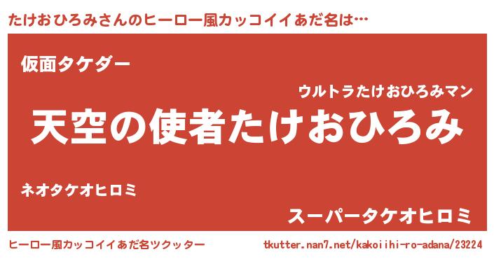 | ヘコむあだ名 | 『たけもー』『なまこ酢』『たけを』 |
