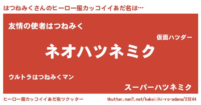 | ヘコむあだ名 | 『はつねみく(小並感)』『はつっふぃ~』 |