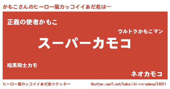 | 男性向けラノベタイトル風あだ名 | 『かもこの憂鬱』『カモコスレイヤー』 |