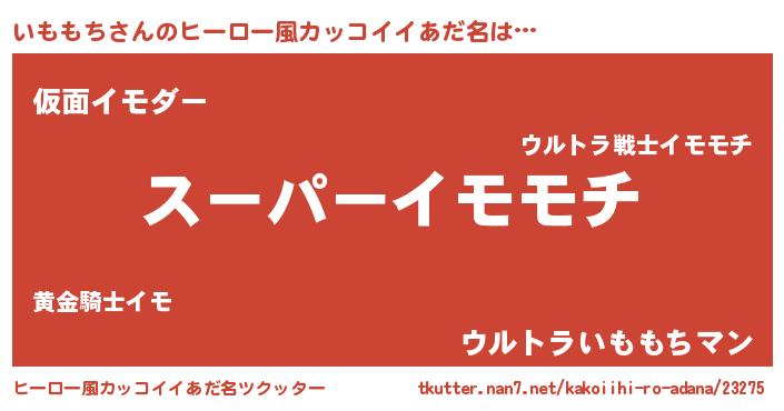 | 男性向けラノベタイトル風あだ名 | 『イモモチスレイヤー』『いももちの憂鬱』 |