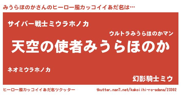 | 男性向けラノベタイトル風あだ名 | 『ノーゲーム・ノーミウラホノカ』 |