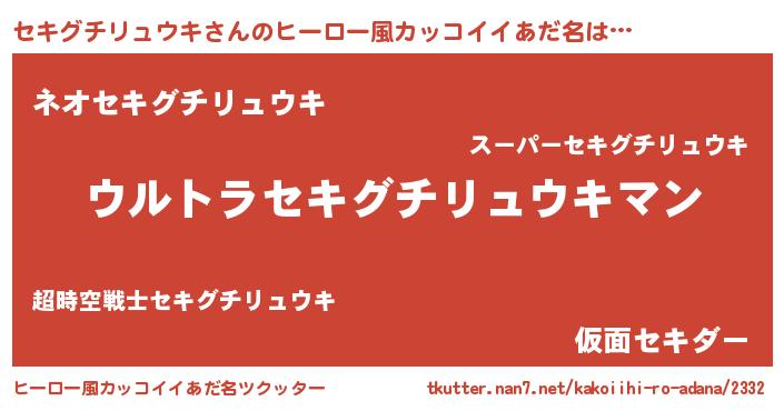 | 欧米人風あだ名 | 『セキグチリュウキクリステル』 |