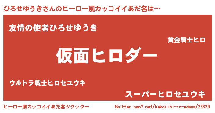 | 男性向けラノベタイトル風あだ名 | 『魔弾の王とひろせゆうき』 |