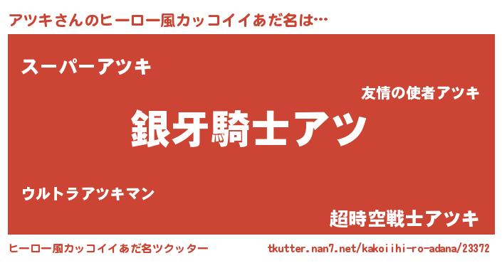 | 女子向けラノベタイトル風あだ名 | 『アツキの卵を拾いまして』 |