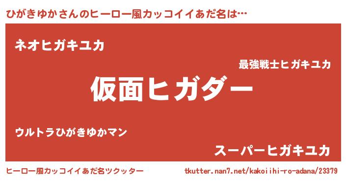 | ヘコむあだ名 | 『ひがきゆか(笑)』『ひがもー』 |