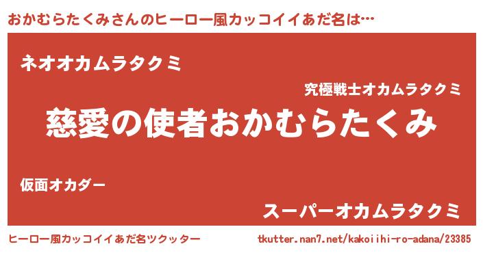 | 伝説のあだ名 | 『救世主となる技術者おかむらたくみ』 |
