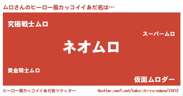 | 男性向けラノベタイトル風あだ名 | 『ムロという概念が存在しない退屈な世界 』 |