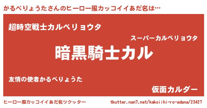 | 男性向けラノベタイトル風あだ名 | 『ダンジョンにかるべりょうたを求めるのは間違っているだろうか』 |