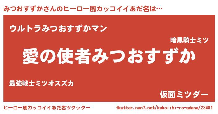 | 欧米人風あだ名 | 『アンジェラ・みつおすずか』 |