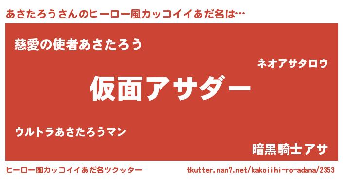 | 男性向けラノベタイトル風あだ名 | 『この素晴らしい世界にあさたろうを!』 |