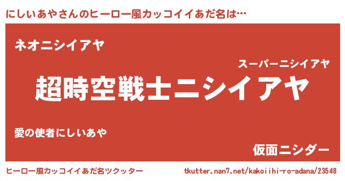 | 意味不明あだ名 | 『自称にしいあや』『永久保存にしいあや』 |