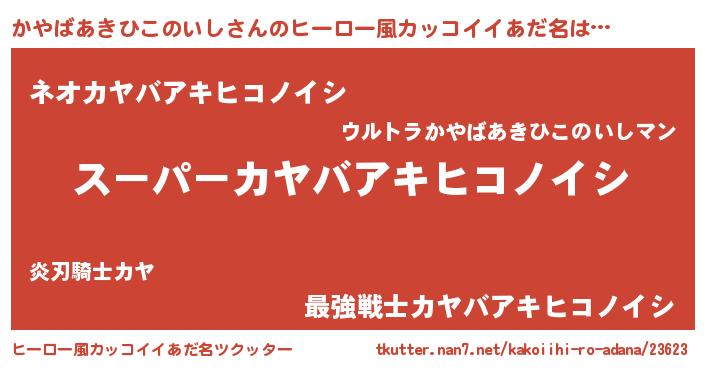 | 男性向けラノベタイトル風あだ名 | 『かやばあきひこのいしに滅ぼされるだけの簡単なお仕事です』 |