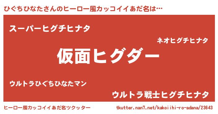 | 男性向けラノベタイトル風あだ名 | 『この素晴らしい世界にひぐちひなたを!』 |