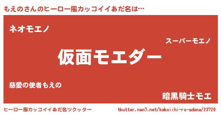 | 男性向けラノベタイトル風あだ名 | 『この素晴らしい世界にもえのを!』 |