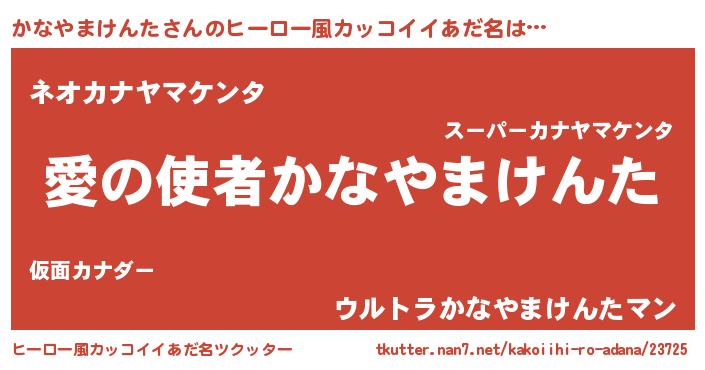 | 女子向けラノベタイトル風あだ名 | 『かなやまけんた恋絵巻』 |