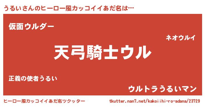 | 男性向けラノベタイトル風あだ名 | 『うるいの嫁は女の子じゃないと思った?』 |