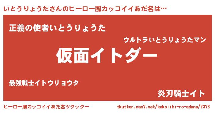 | 男性向けラノベタイトル風あだ名 | 『魔弾の王といとうりょうた』 |
