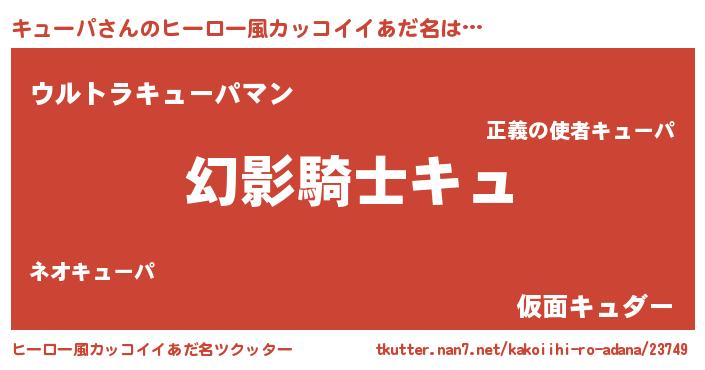 | 男性向けラノベタイトル風あだ名 | 『キューパの嫁は女の子じゃないと思った?』 |