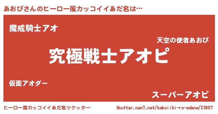 あおぴさんのヒーロー風カッコイイあだ名をツクッター!