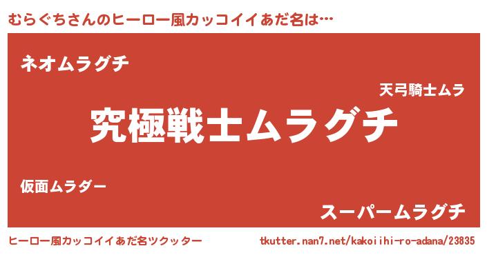 | 男性向けラノベタイトル風あだ名 | 『むらぐちに滅ぼされるだけの簡単なお仕事です』 |