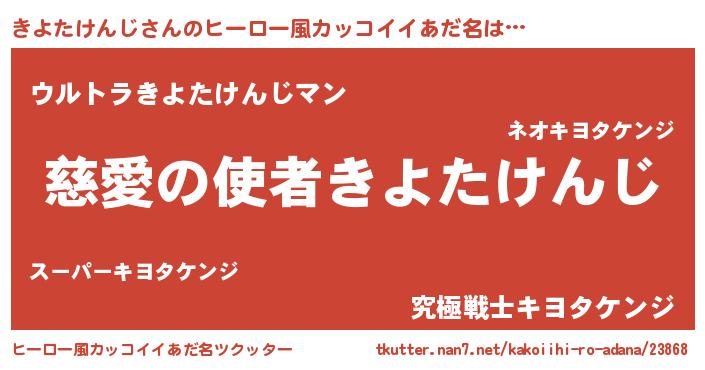 | 男性向けラノベタイトル風あだ名 | 『ノーゲーム・ノーキヨタケンジ』 |