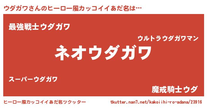 | ヘコむあだ名 | 『ウダガワ(爆)』『ウダを』『豆乳』 |