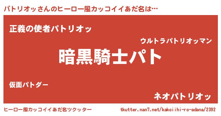 | 意味不明あだ名 | 『とにかく怪しいパトリオッ』 |