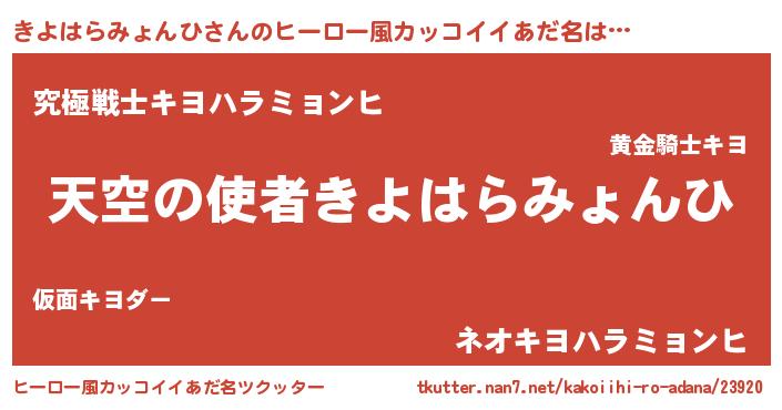 | ヘコむあだ名 | 『きよはらみょんひ(苦笑)』『きよっ子』 |