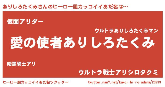 | 女子向けラノベタイトル風あだ名 | 『ありしろたくみ恋絵巻』 |
