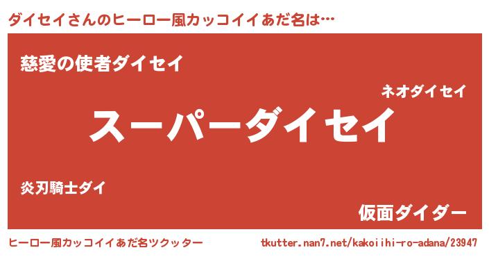 | ヘコむあだ名 | 『ダイっふぃ~』『ダイセイ(爆)』 |