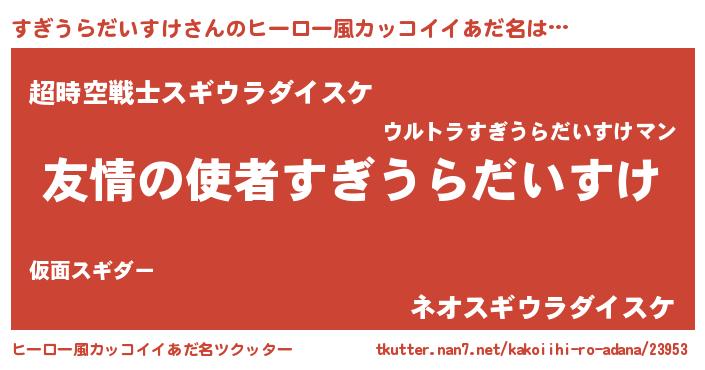 | 胡散臭い通販商品みたいなあだ名 | 『100人中100人が認めたイリジウム磁石…その名も「すぎうらだいすけ」』 |