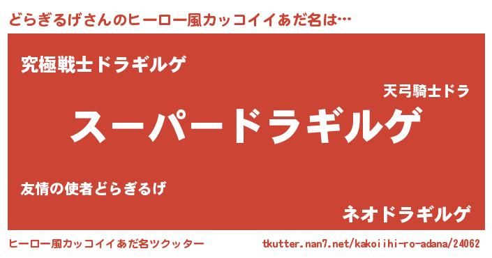 | 男性向けラノベタイトル風あだ名 | 『どらぎるげの憂鬱』 |