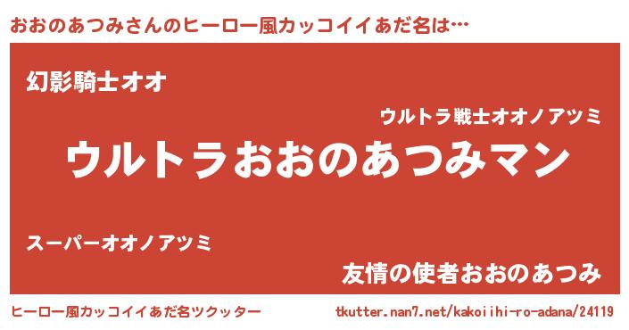 | 男性向けラノベタイトル風あだ名 | 『やはりおおのあつみの青春ラブコメはまちがっている 』 |