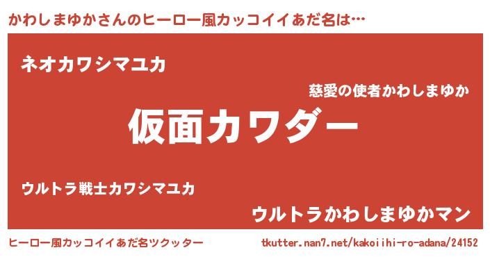 | 男性向けラノベタイトル風あだ名 | 『この素晴らしい世界にかわしまゆかを!』 |