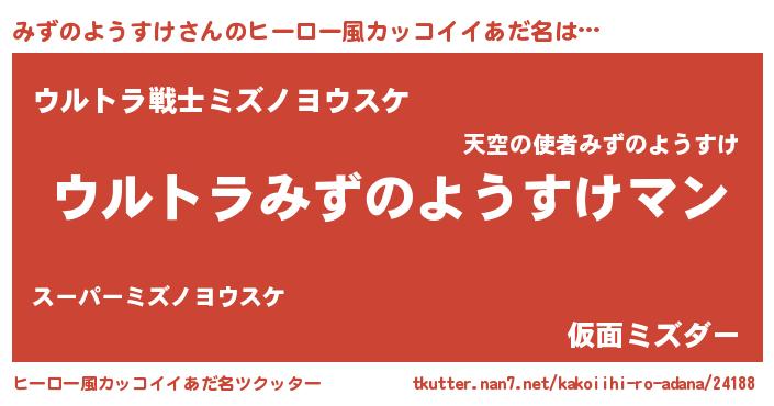 | 男性向けラノベタイトル風あだ名 | 『やはりみずのようすけの青春ラブコメはまちがっている 』 |