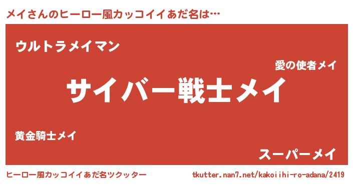 | 意味不明あだ名 | 『自称メイ』『メイフォーエバー』 |
